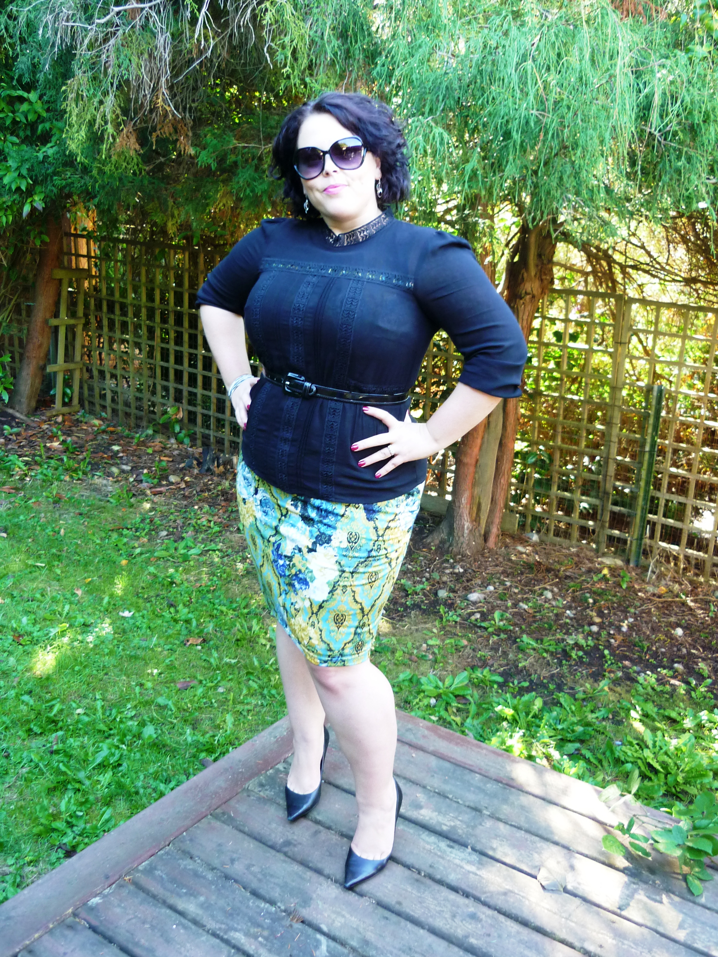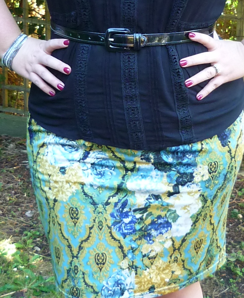 I paired a new black top with little lace insets and a collar with a spring dress of mine for sort of an unexpected date look. Hubby took the pics, and he liked the combo as well. A top and a dress are perfect for me for the weather right now, so I’ll be wearing different variations of this in the next few weeks. Except today is raining. Bugger.