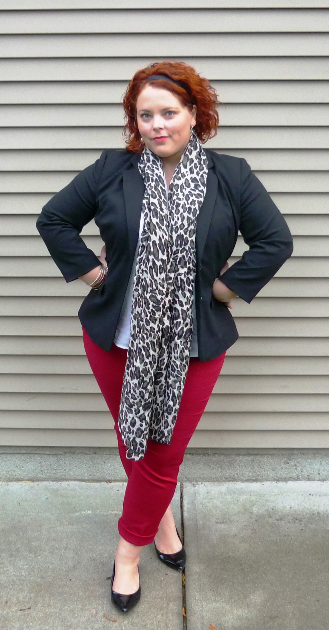Blazer: Banana Republic Factory/Top: Old Navy/Pants: Van Heausen/Heels: Le Chateau/ Jewelry, earings, hairband,