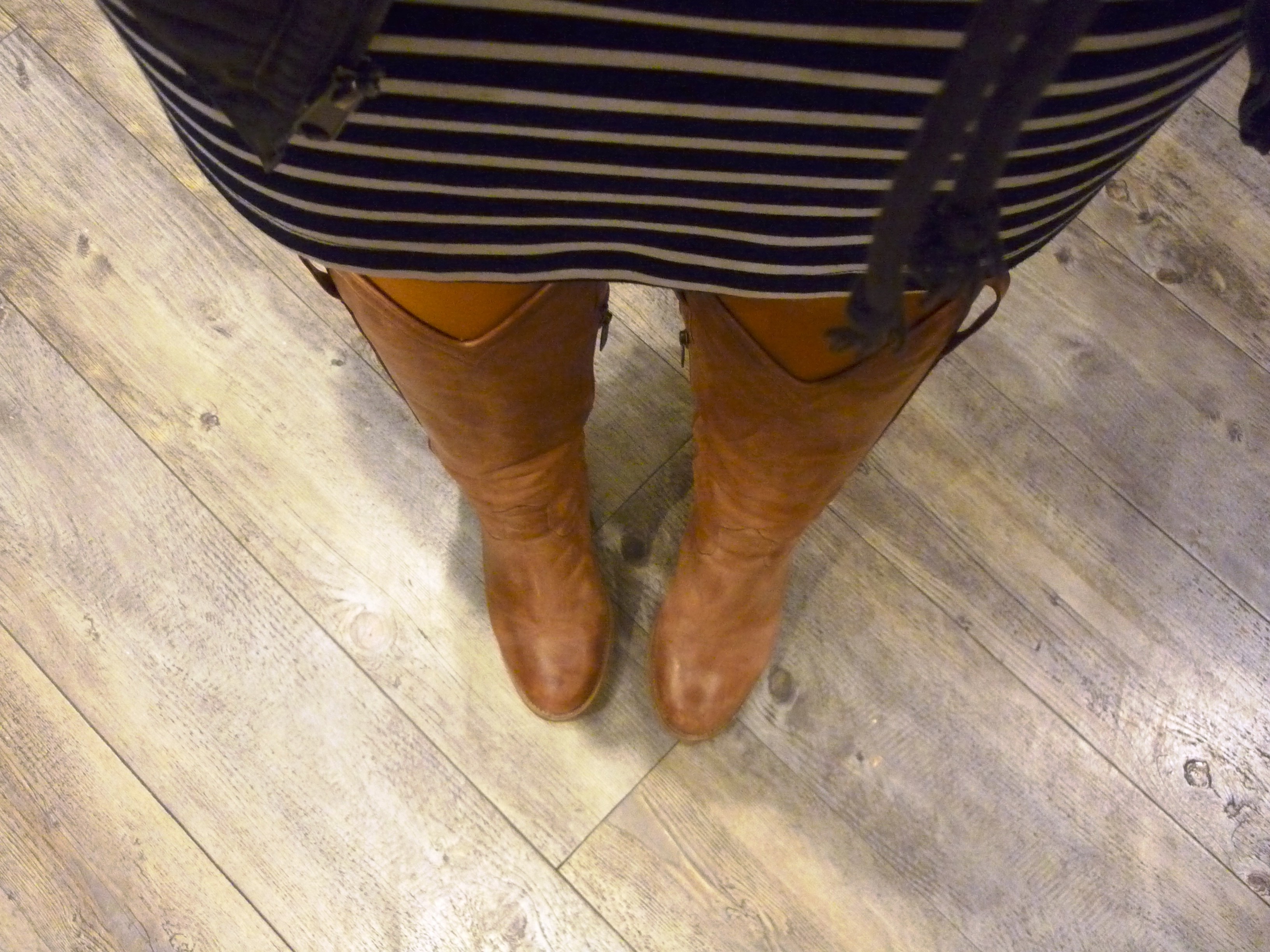 Straight-on shot of my outfit. I wore this all day, and it was pouring outside. Nothing in this ensemble is water-proof, but I don’t care. I have only been outside to run to or from the car, and the outfit is cozy for when I’m inside. Plus, the colours! Are kidding me? The mustard yellow is the cat’s pajamas!