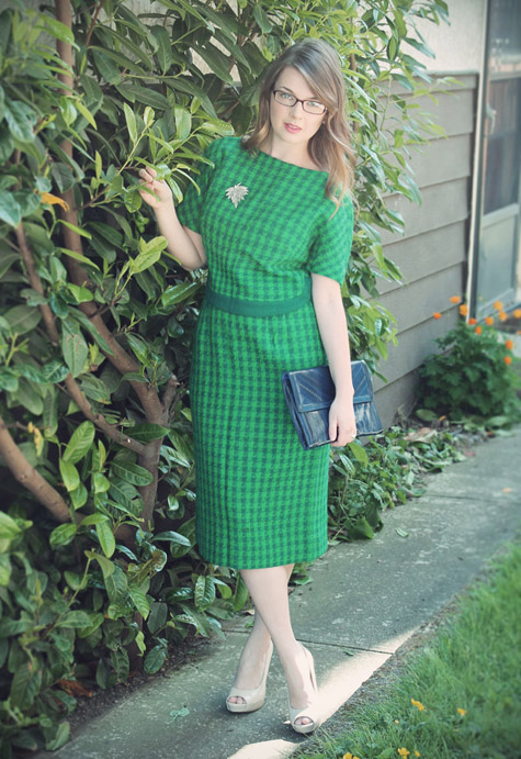 This suit (yes, it’s 2 pieces) is so 60s, the perfect green, and it’s from an iconic midcentury department store. I wonder if a young secretary wore it to her first job in a big city. I love all the possible stories that vintage brings.