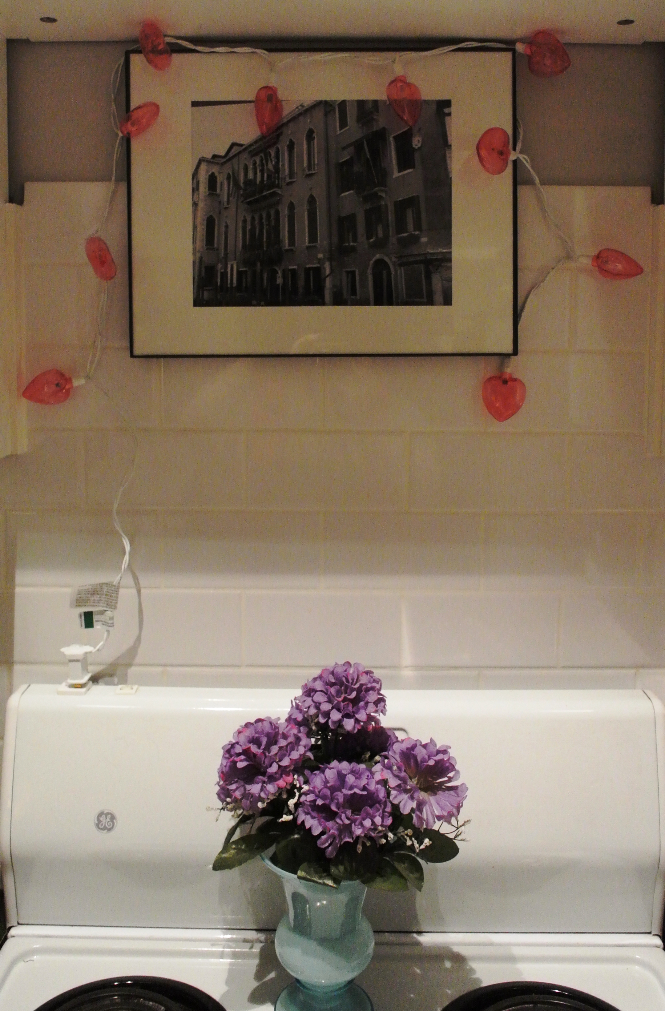 I got these heart lights at Target for $1, and they’ve been lighting my stove hole up for over a month. This morning though? They died. How ironical, right?