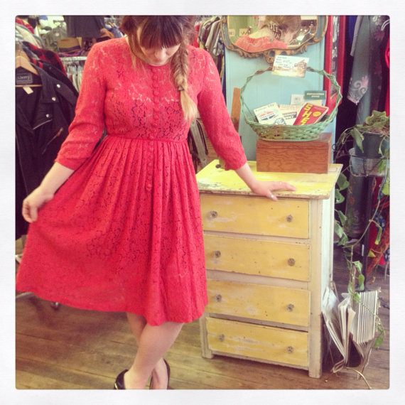 For some reason, vintage lace, taffets, silk and chiffon become perfectly acceptable to wear during the day because they have entered the land of kitch and even if they were once considered evening wear, they don’t have to be anymore. There’s nothing I enjoy more than seeing someone wearing a fancy vintage frock with flats and a jean jacket, or even sandals! It makes me happy because re-imagining clothes is what creative fashion is all about, and what makes looking at clothes interesting in the first place. Here are some images that make my heart sparkle: