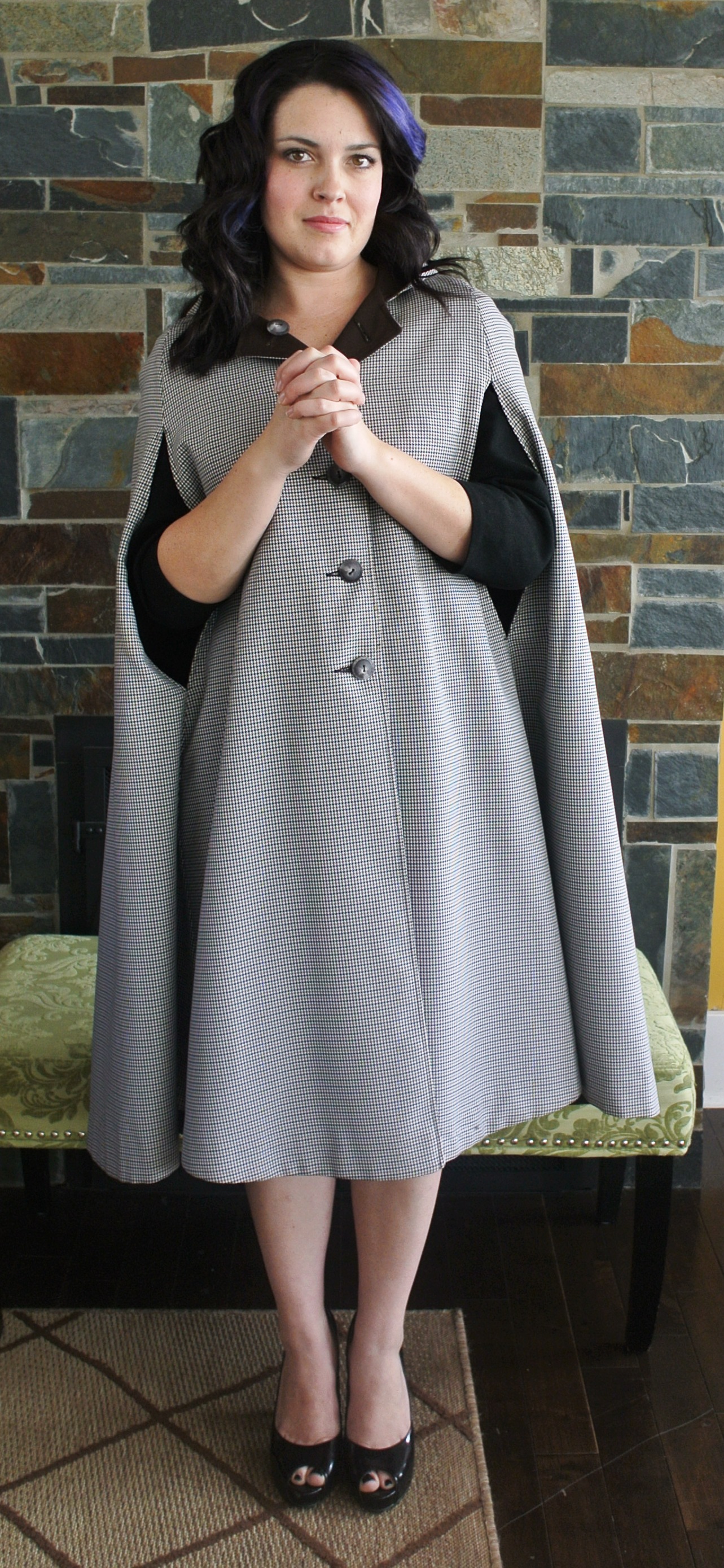 Next up: this 60s cape. It’s a bit longer than capes made today, which makes it a bit more elegant and functional in my opinion. It’s also reversible and has a hood!