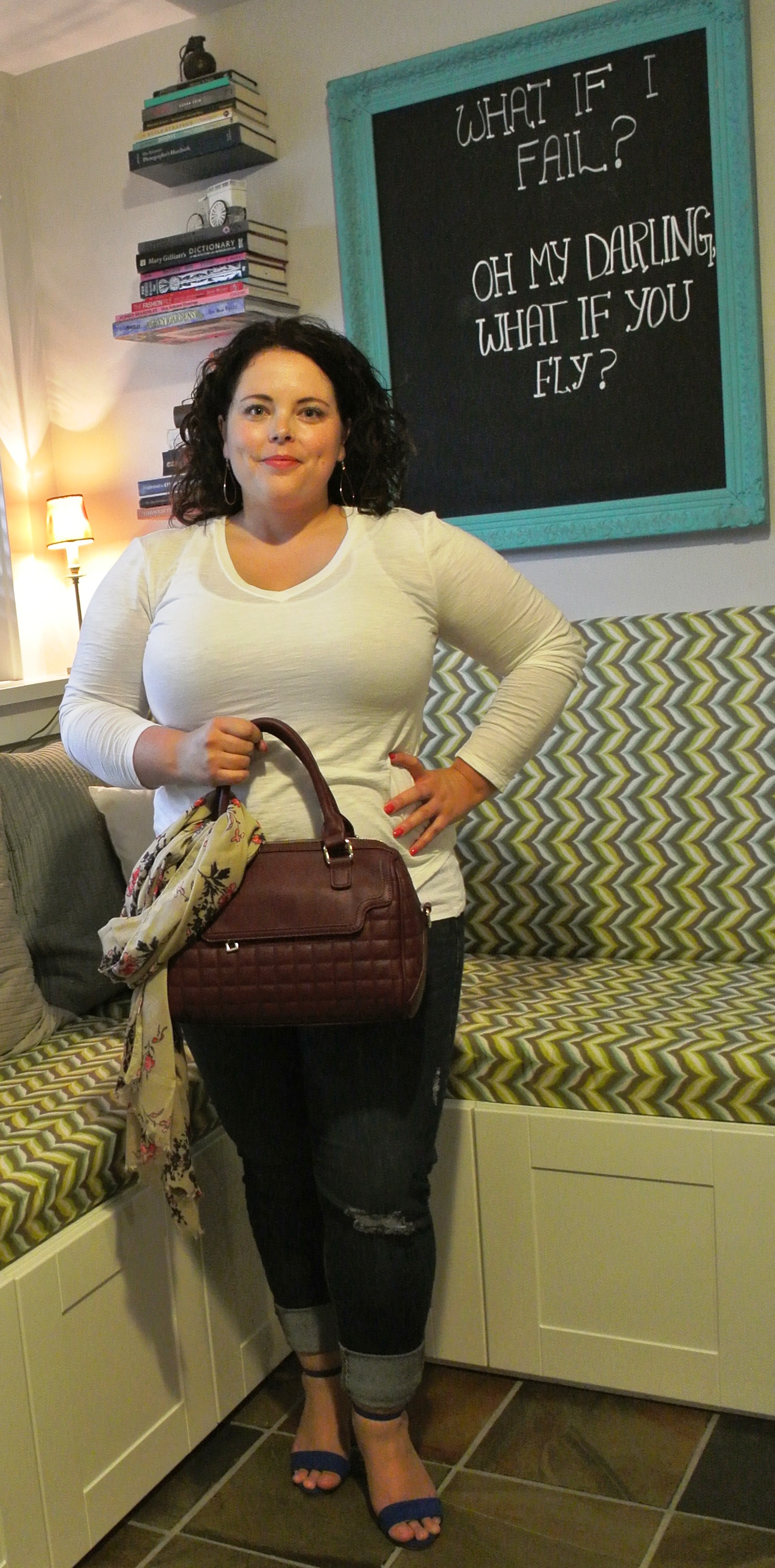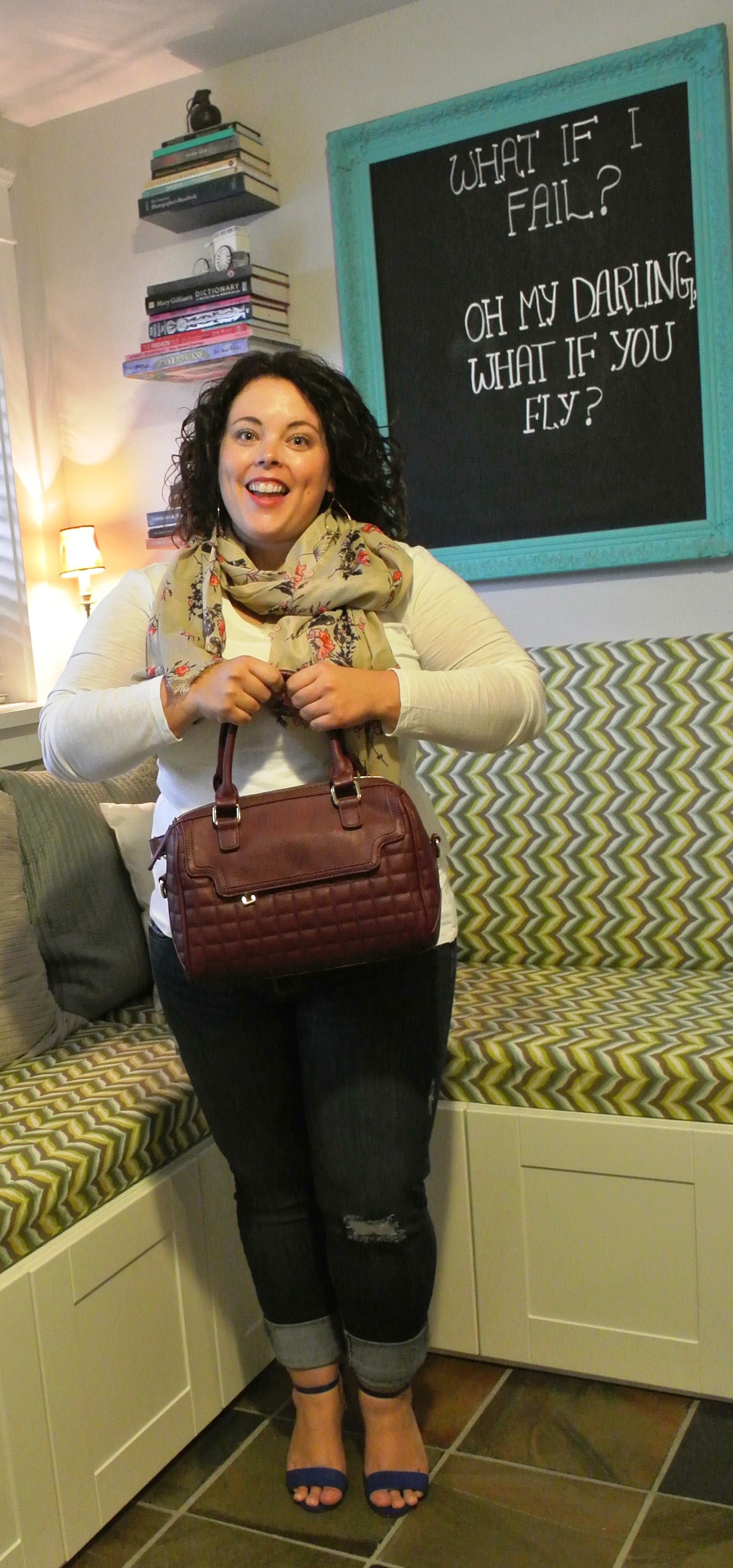 #3: Burgundy quilted doctor bag (including cross-body strap) from Winners with beige floral scarf