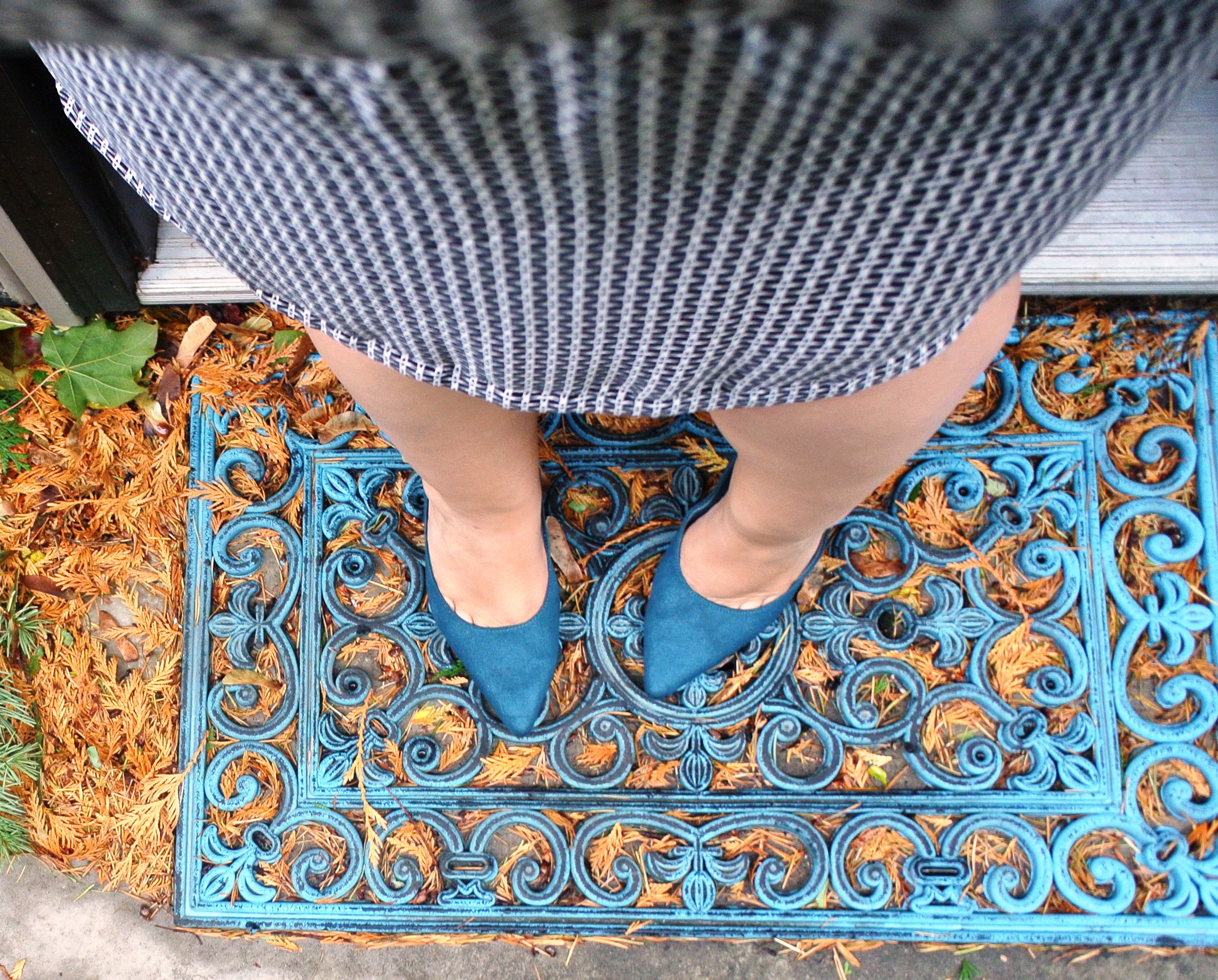 There was a raging storm here last night, and this morning there’s tree matter EVERYWHERE. I passed a porta potty on it’s side in the street this morning, which can’t be good for anybody. Here’s a picture of my front door welcome mat, which doesn’t look TOO bad, until you know there are no trees by my door so those needles travelled kind of far. Whoa, windy. Pretty colours though, right?