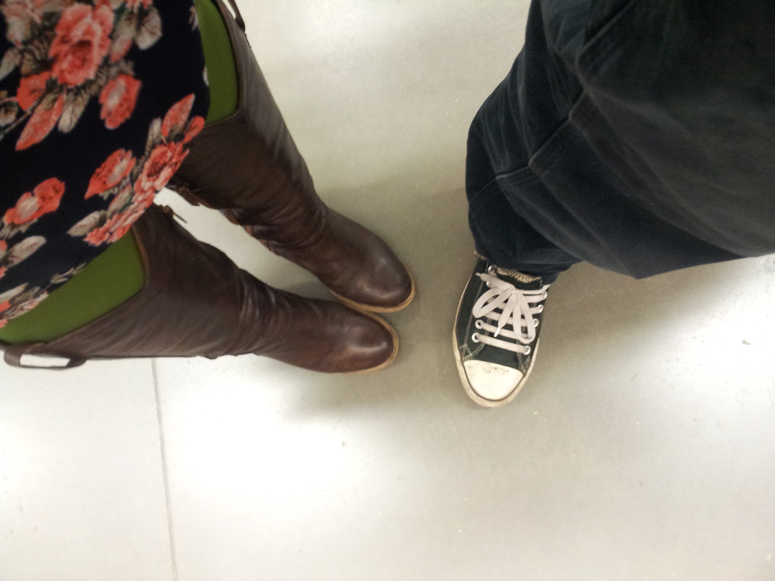 We have a cozy moment in the home depot, and Jeff actually fits his top part in the frame. My scarf doubles as a blanky-pillow.