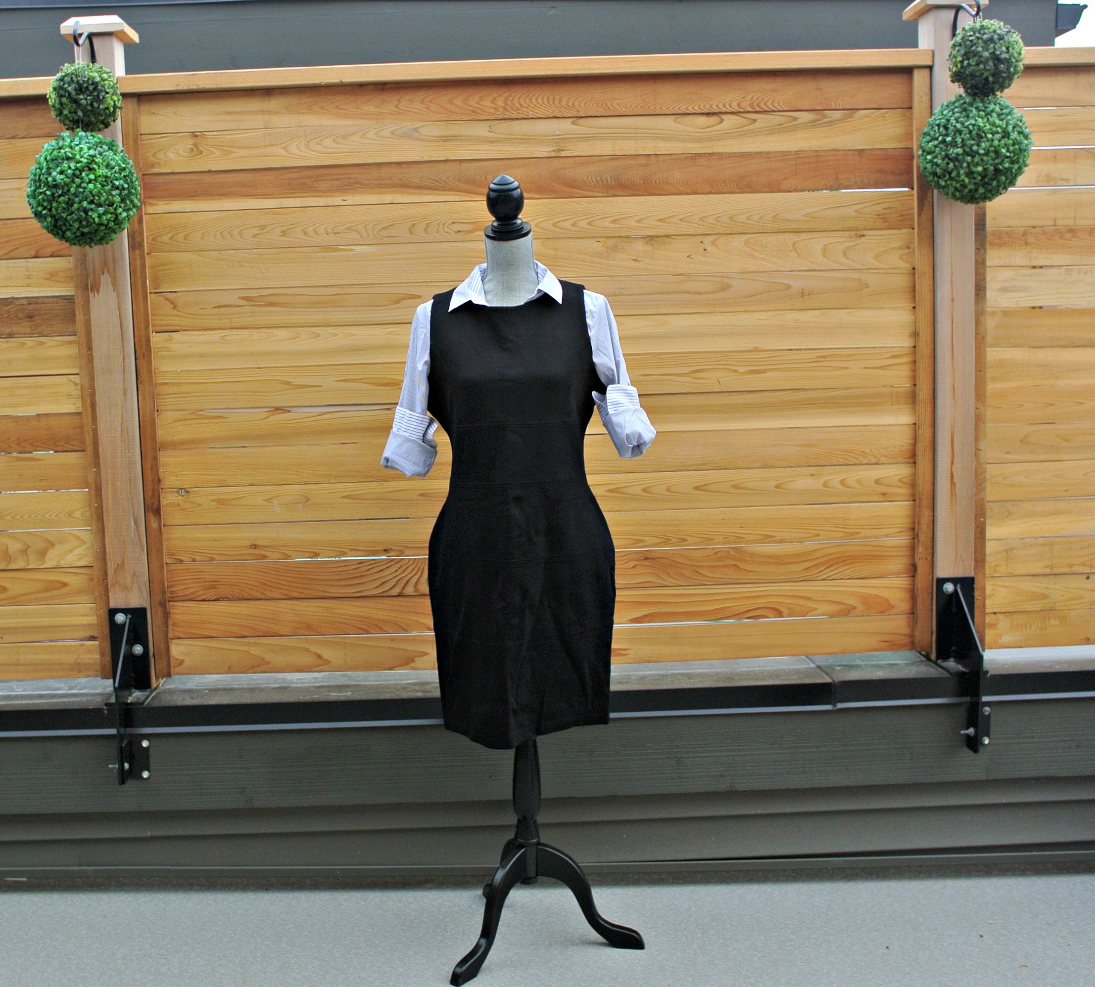 13) Stretchy Black sheath dress, picture with dress shirt underneath.