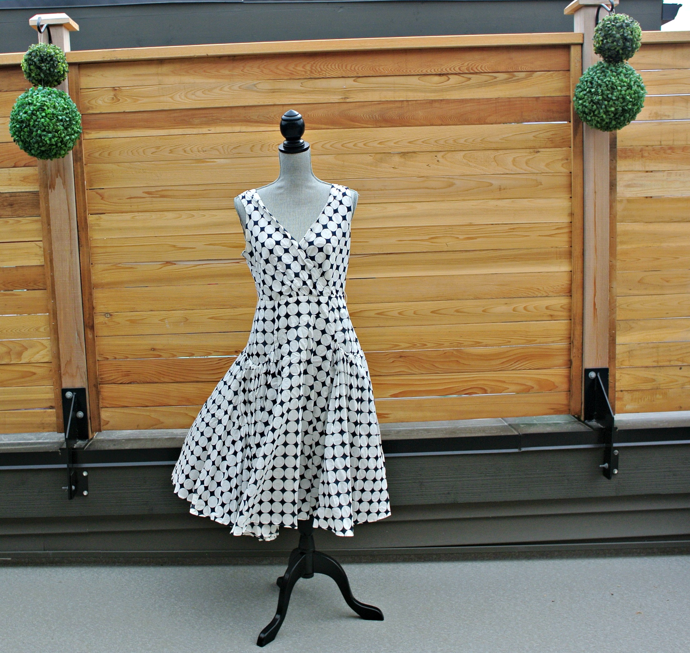 5) SOLD Navy and white polka dot dress with pockets, v-neck, fit and flare.