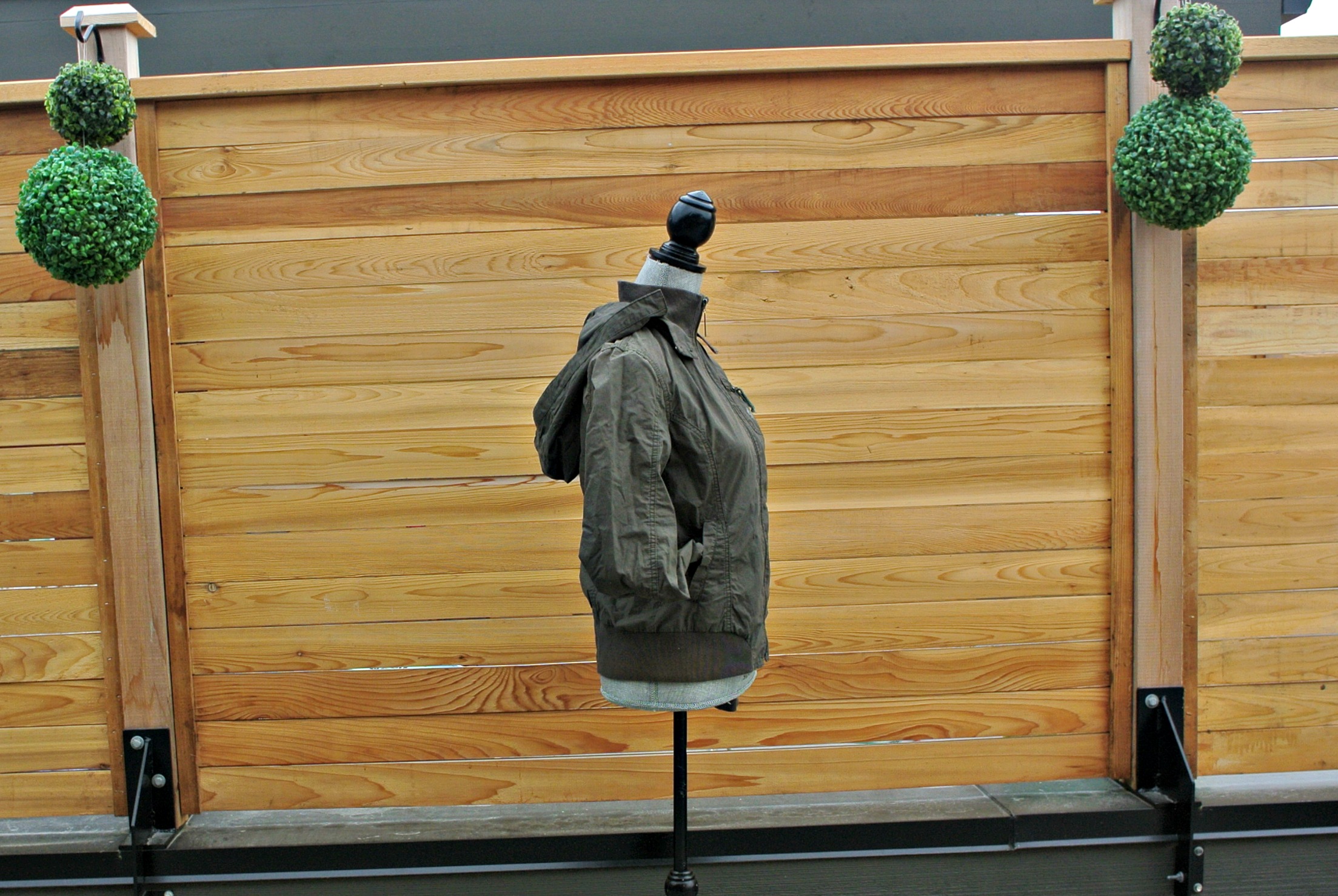 6) SOLD Khaki green Groggy jacket with detachable hood, pockets and stretchy waist and wrists.