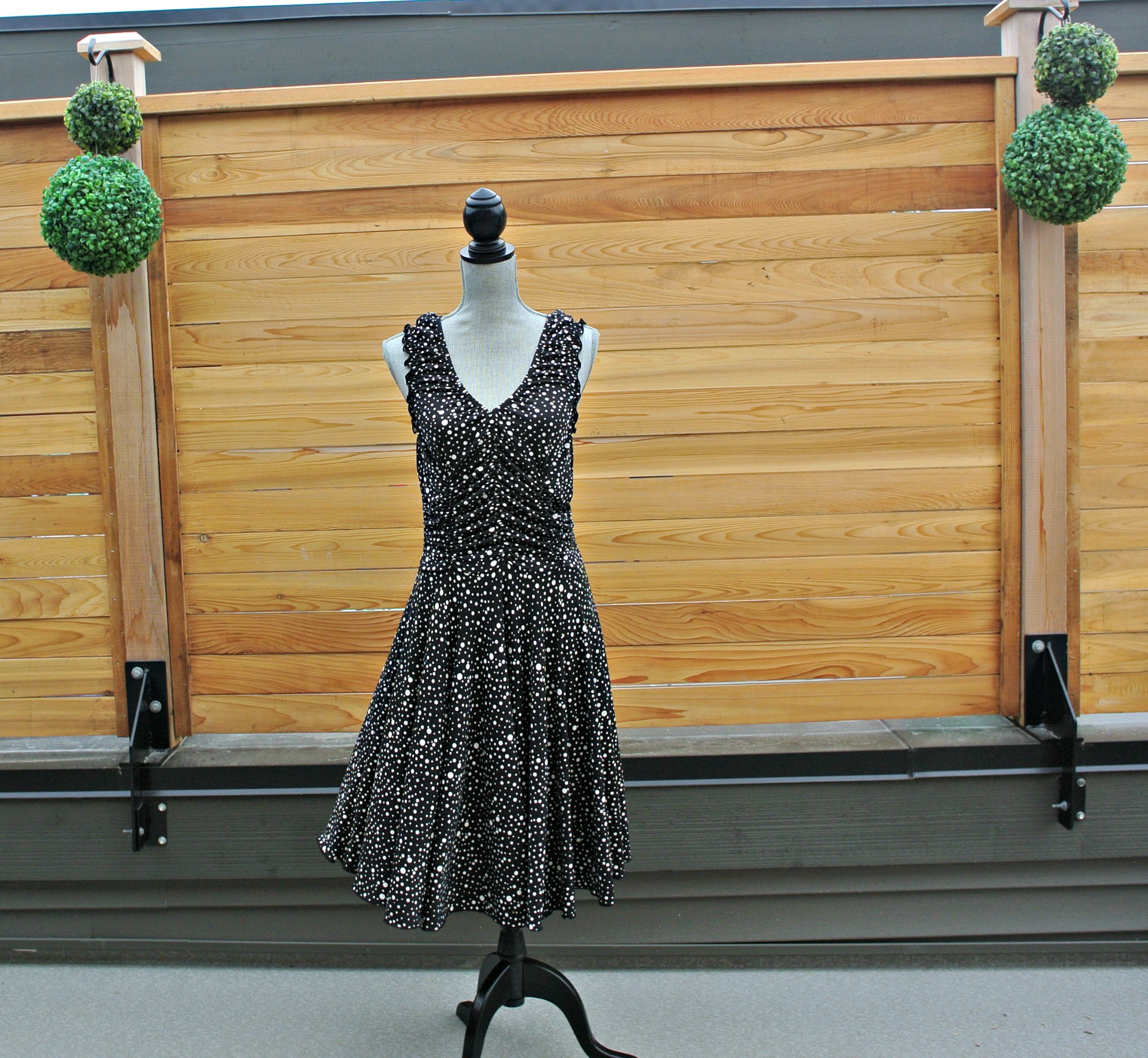 24) SOLD Ruched bubbles dress: all stretch, very flattering.  Can fit size 8-16 comfortably.  Tie back, very swingy!