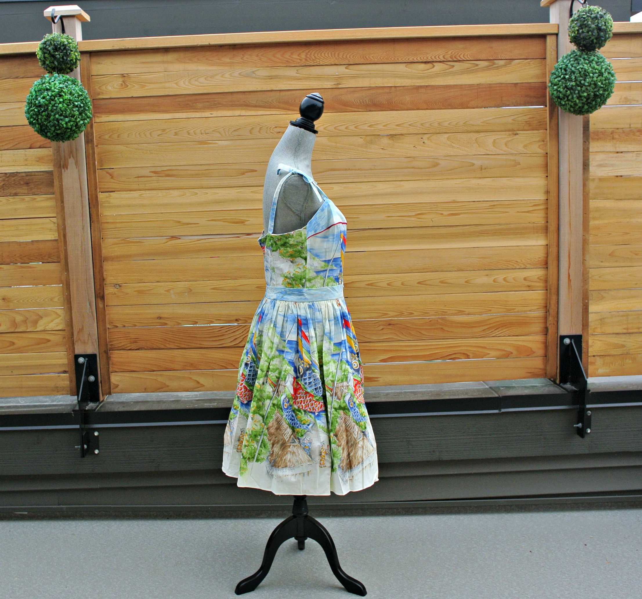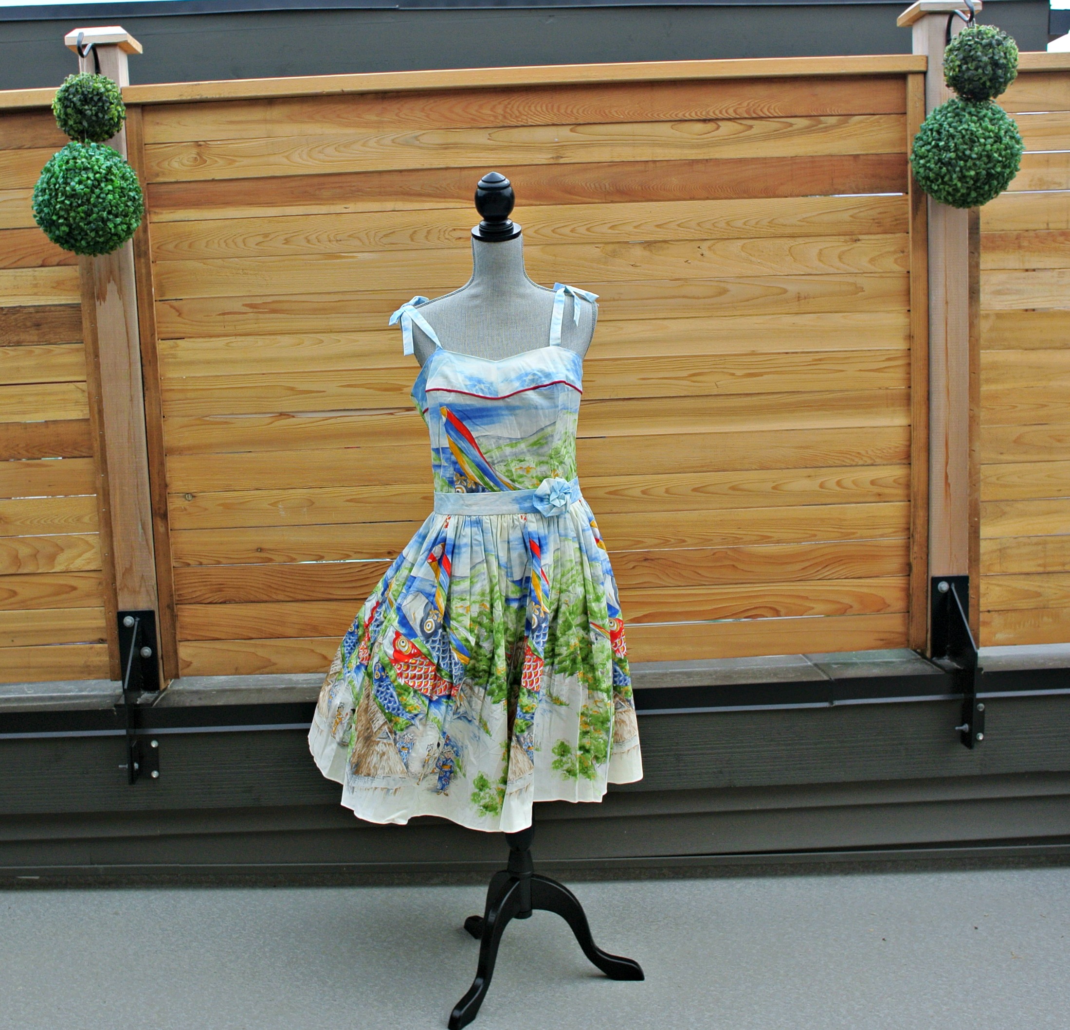 21) Japanese fishing print fit and flare dress from modcloth.com: tie straps, zipper back, molded bodice.  Beautiful dress, never worn!