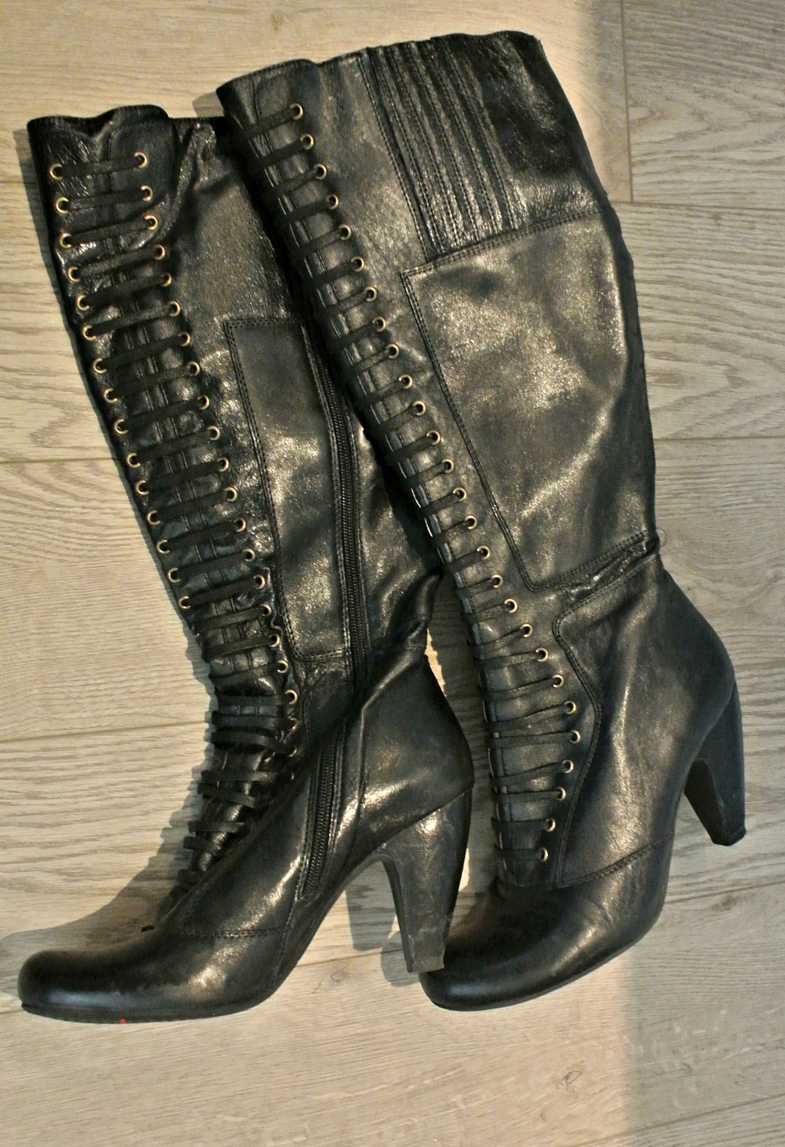 15. Black Miz Mooz faux lace up tall boots. Professionally extended calf measures 16 inches around. Size 9.
