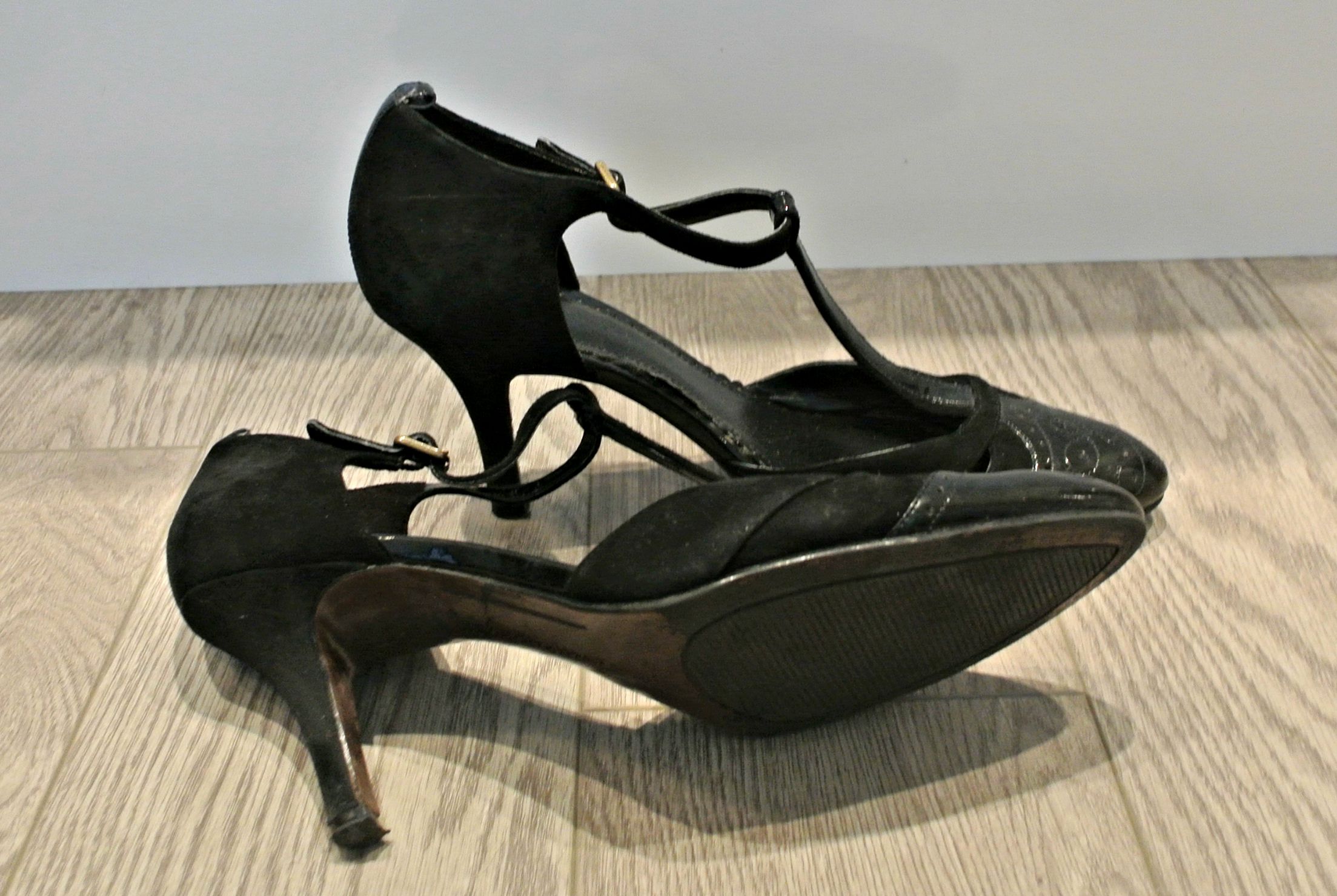 11. Black Naturalizer patent leather and suede t-strap. size 9