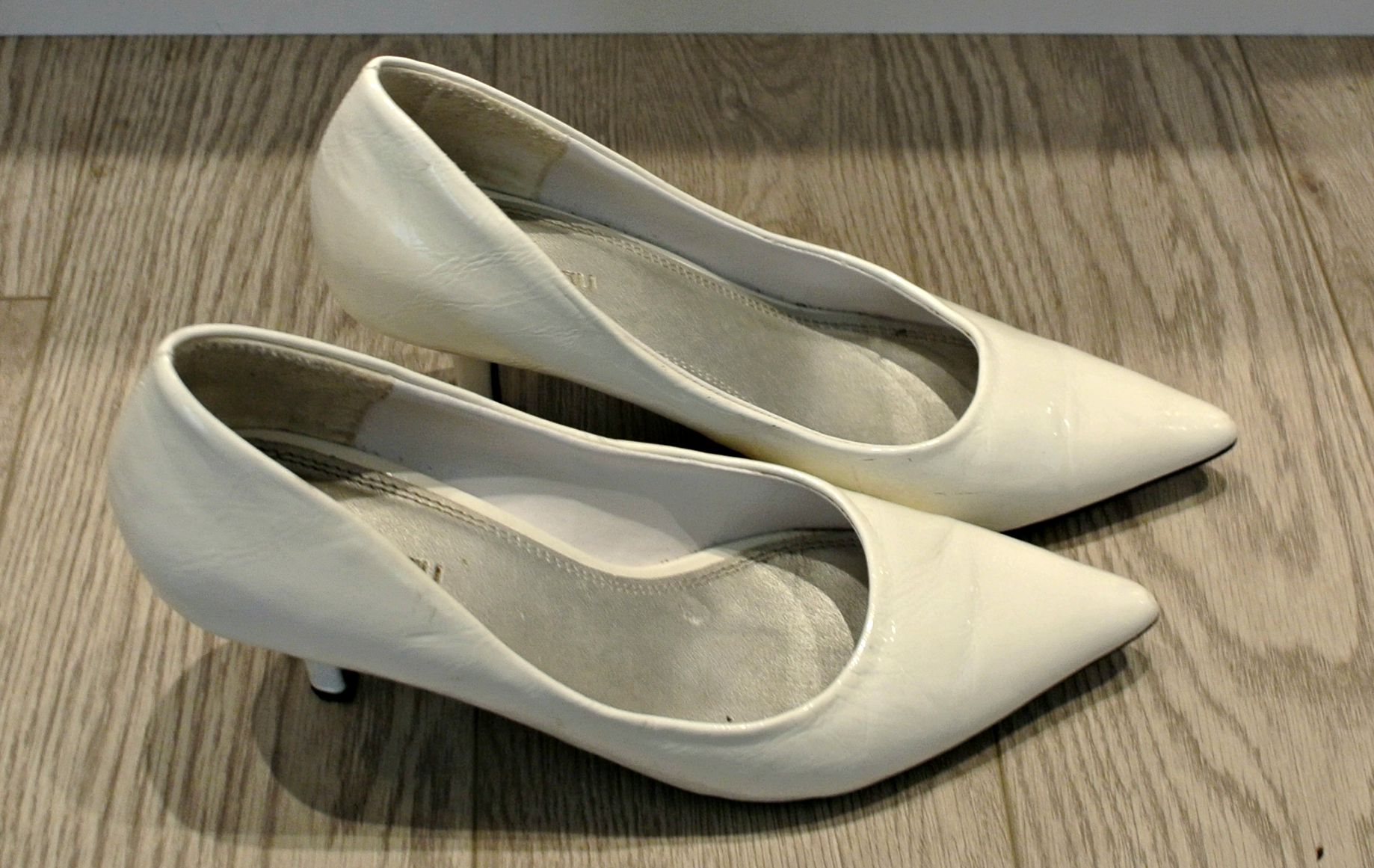12. White patent Le Chateau pointy toe heels, great for wider feet. size 9